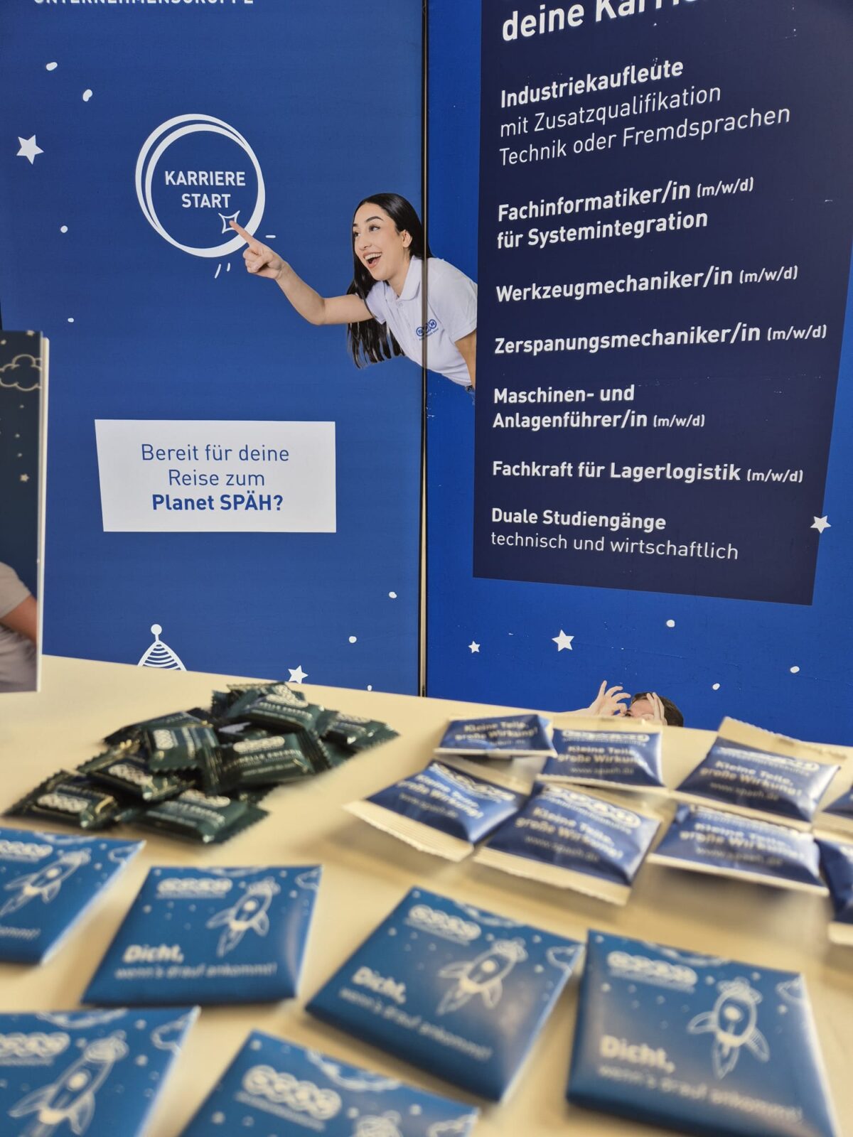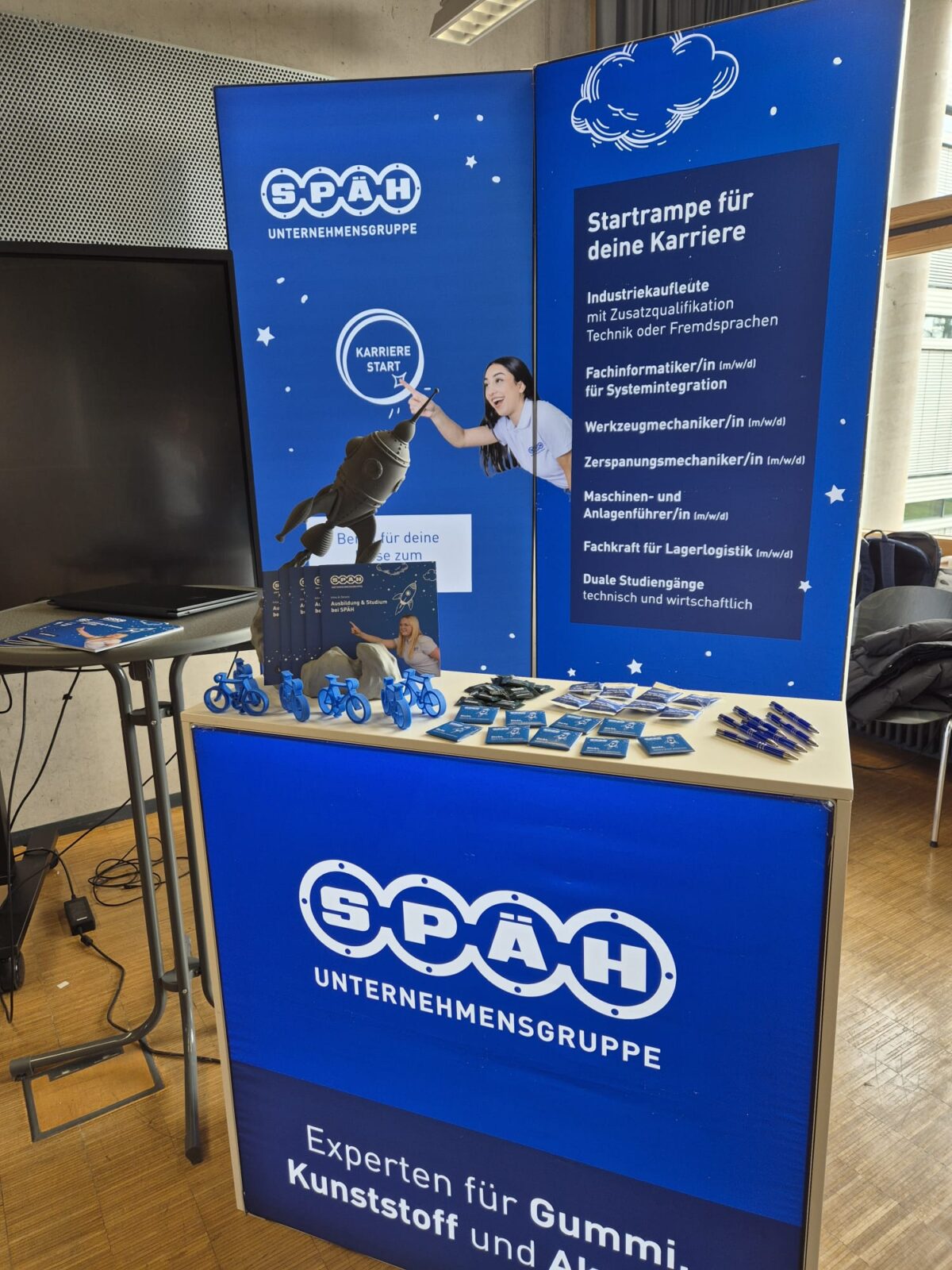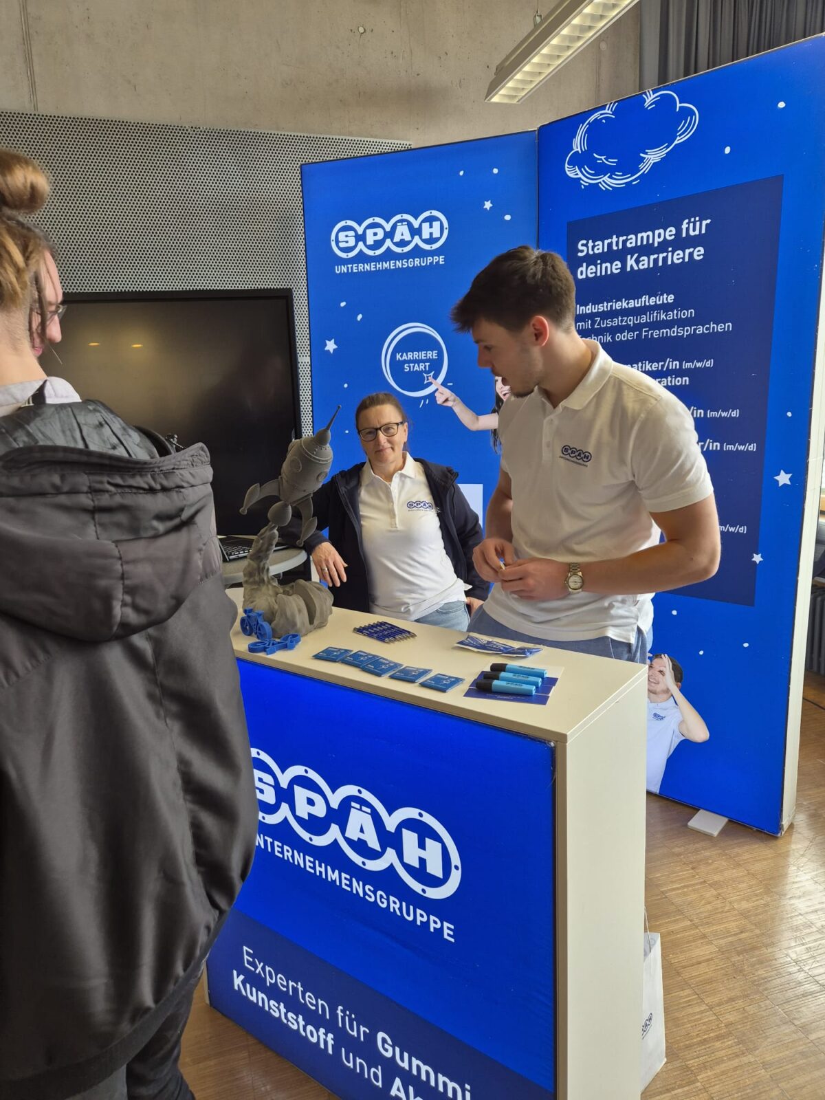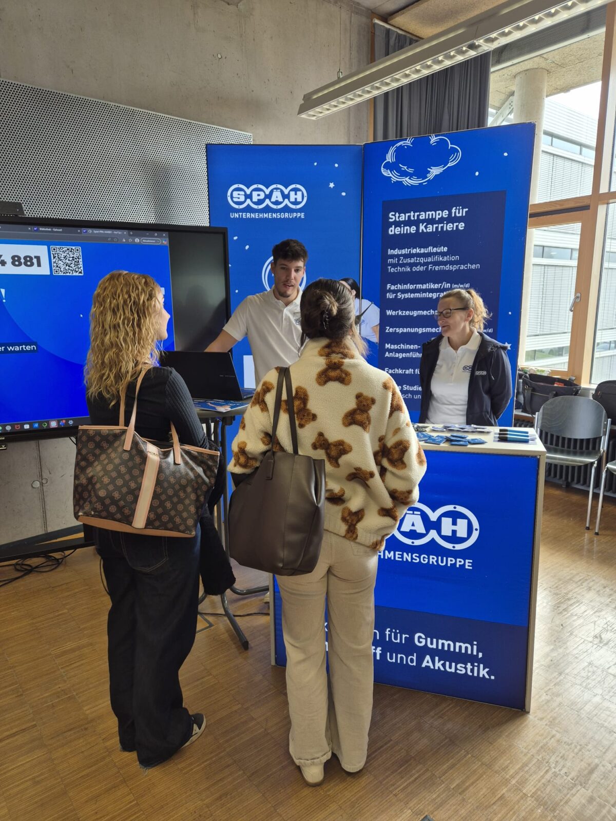 An unserem Stand präsentierten wir unsere aktuellen Stellenangebote, Ausbildungsplätze und Studienmöglichkeiten. Egal, ob kaufmännisch, technisch oder kreativ – wir konnten den Besucherinnen und Besuchern aufzeigen, welche vielfältigen Wege SPÄH in eine erfolgreiche berufliche Zukunft eröffnet.