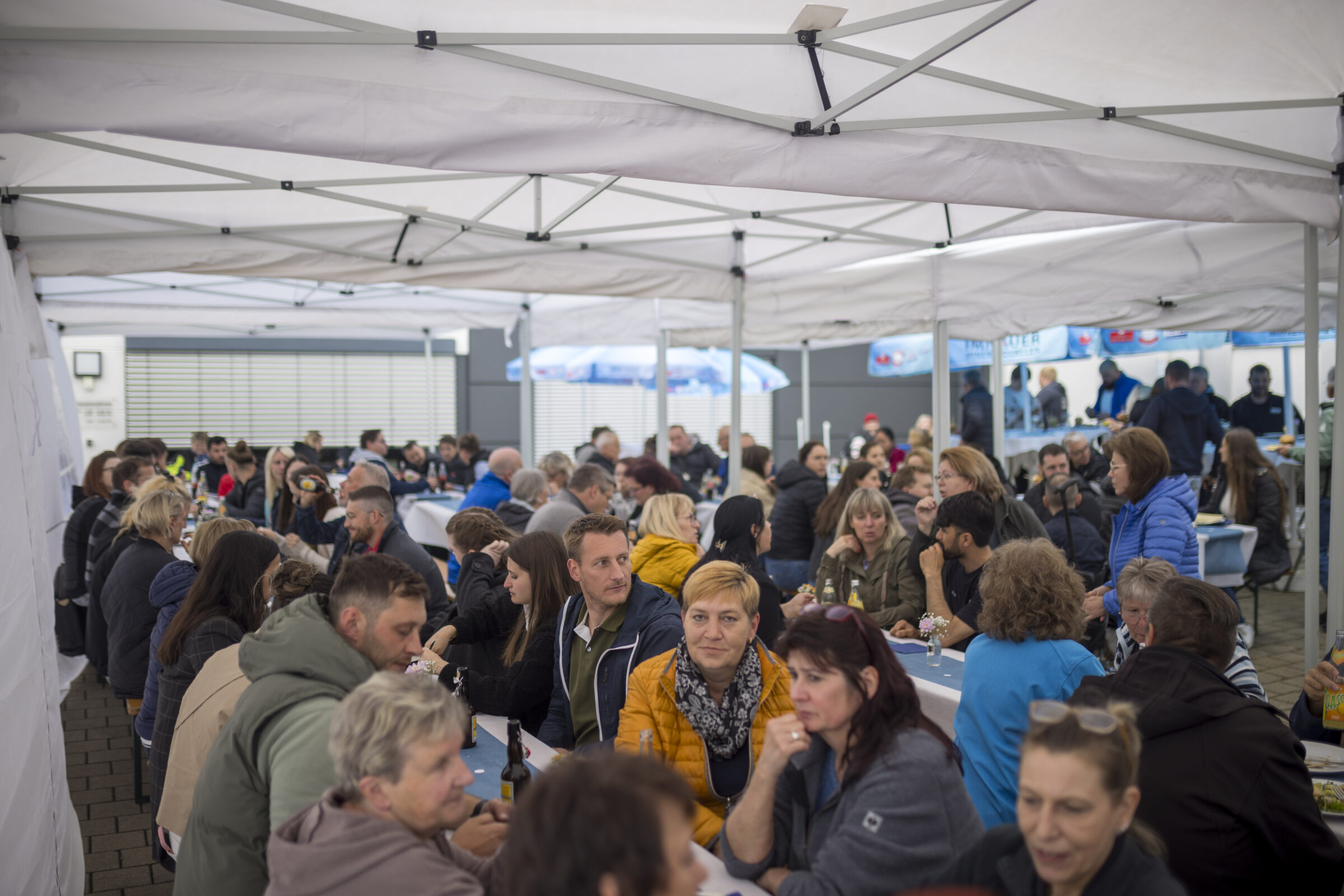 Auf dem Firmengelände entstand rund um den Wareneingang eine gemütliche Festatmosphäre mit großer Eventküche, reichlich Bestuhlung, liebevoller Dekoration und einem breiten Getränkeangebot.